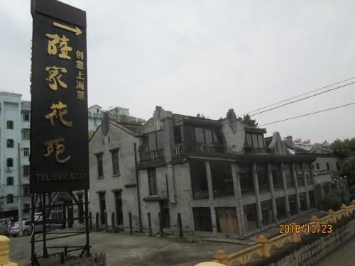 川沙古鎮は上海古鎮より歴史のある街です。明清時代の建物が多く残されています。東西南北の城壕に囲まれた川沙古鎮。北側の水路に沿った道が北城壕路。北市街を北上して北側の水路を渡る橋の袂に建つ建物。看板に陸家花苑、創意上海菜と書いてあるのでレストランのようです。水路に向かって大きな窓があります。この建物は上海優秀歴史建築に認定されました。保護の為の改装工事中です。同時に活用して保護の費用を捻出します。再度高級レストランに成るでしょう。隣は浦東新区が認定した以道堂、以徳堂で改装が終了しています。民家ですので開放するか不明です。