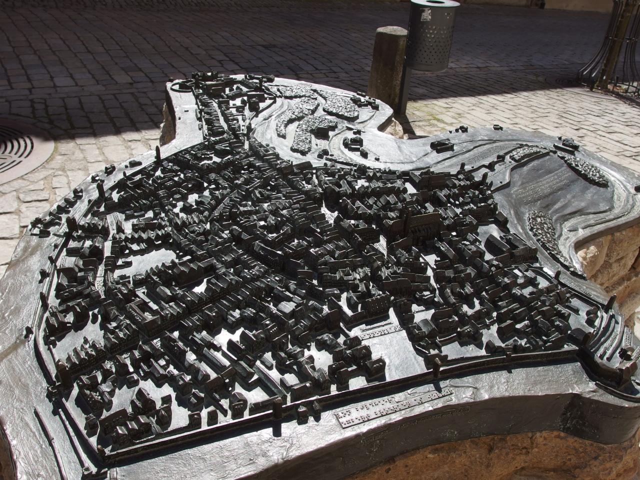 その頃の市壁でぐるっと覆われた川沿いの丘の上に立つ街です。