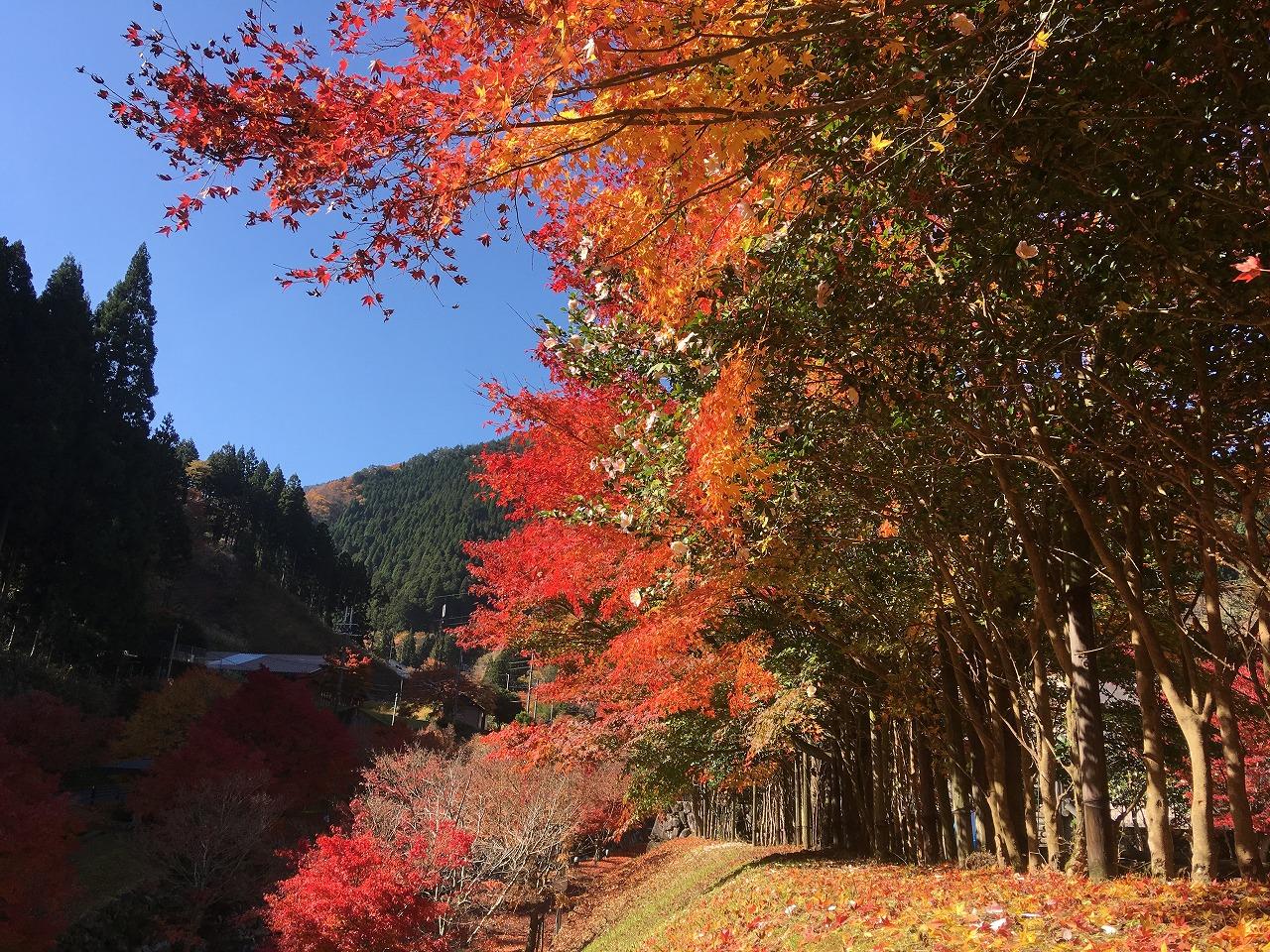 モミジ以外にもクヌギなどの木が落葉してとてもきれいです。