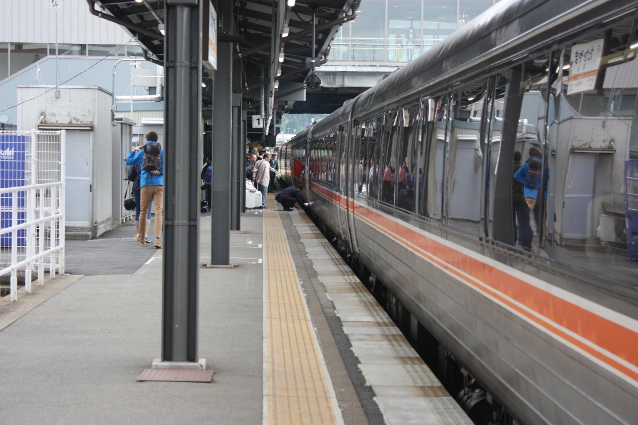14時21分、定刻よりも2分遅れで、名古屋行の特急「ひだ14号」がやって来ました。