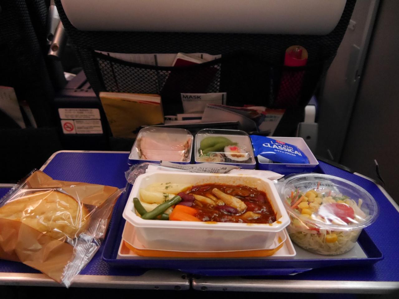 食事はエコノミーと一緒ですが、配り方がエコノミーと違って、オーダーをとって個別に持って来てくれます。