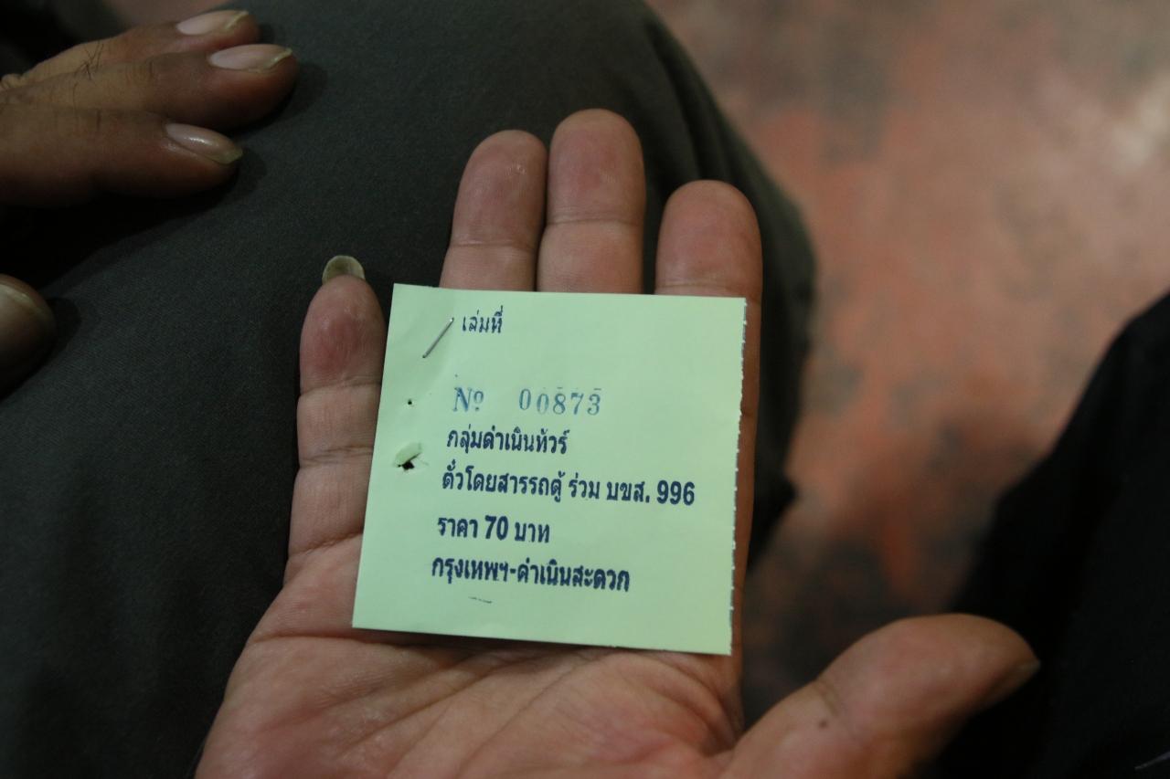 帰りは裏手の道路沿いの乗場で、乗り合いバンを予約します。70バーツでサイタイマイ(南バスターミナル)行き(正確には道路を挟んだその向かいの停留所)。随分、市街地の手前で降ろしやがるんですね。