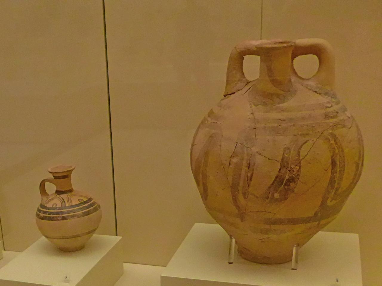 ユーモラスな人形やすてきな壺が並ぶ.ミケーネ文明の高さがわかった考古学博物館の見学だった.
