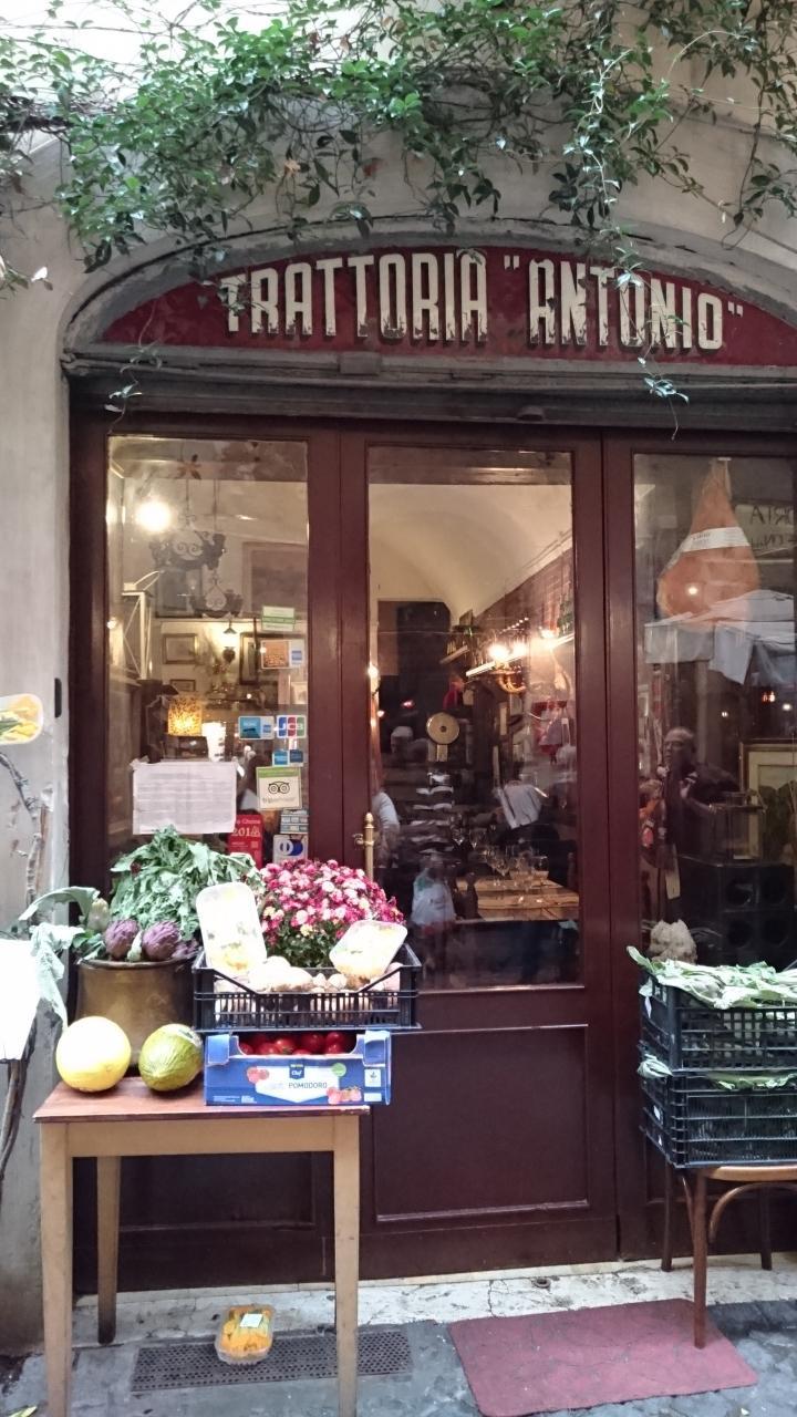 近くにあったレストラン・アントニオ。昔からやっていて日本の雑誌にも紹介されてました。前に季節の野菜が積みあがってます。