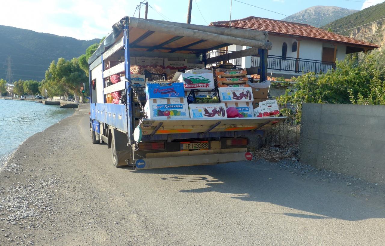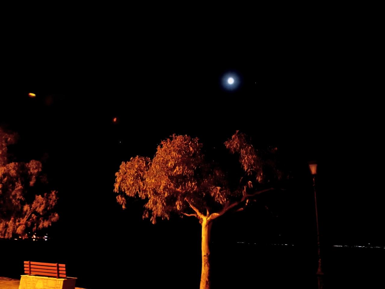 ミニマーケットまで散歩がてら買い物 海がきれいなところだ 2-3日滞在してもいいところ 1泊ではもったいない 夜は外で夕食 明日はアテネのホテル 今日が自炊最後の日 外で夕食 夜の海と月がきれいだった