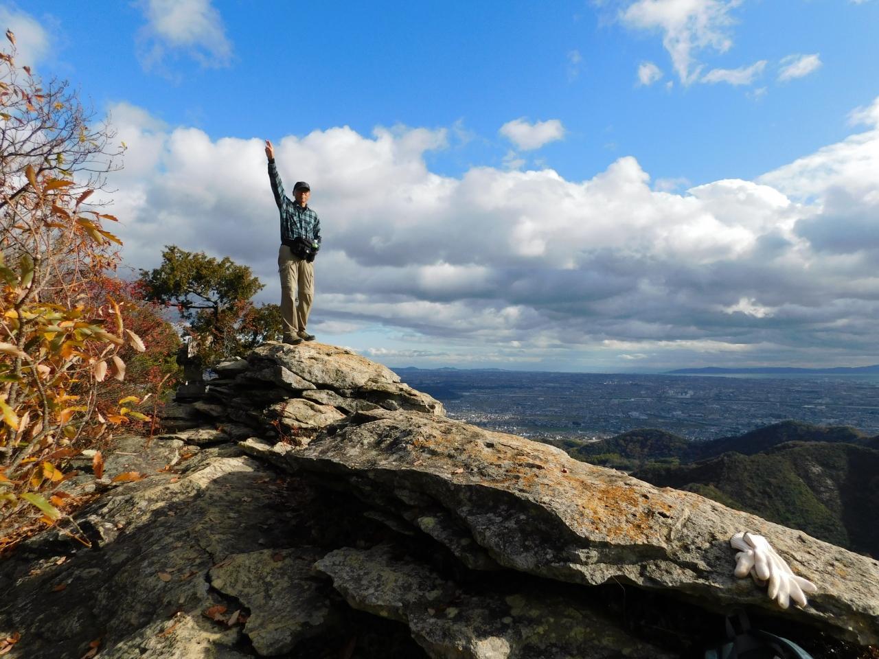百間岩の写真が撮れないので、悔し紛れに上部の岩でポーズ。