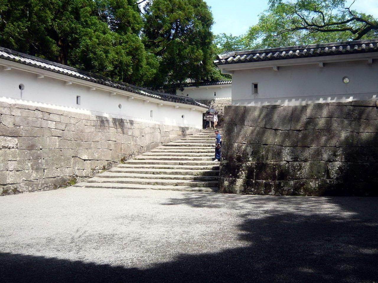 大手門の先には、桝形と城内へ続く長い石段があります。