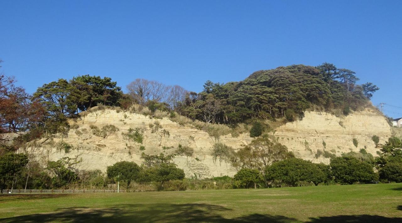 断崖が見えるが、この公園辺りは昔は海だった。 -