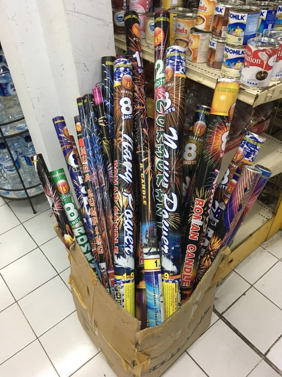 ホテル目の前のパンタイカラン、公共ビーチで、花火を打ち上げてました。