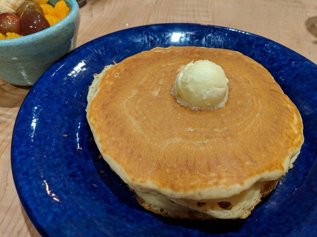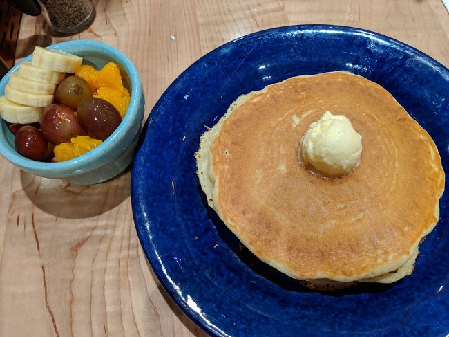 ホットケーキだけだとさみしいかなと思い、Hotcake breakfast mealを注文。卵はスクランブルエッグ、肉はチャモロソーセージで。
