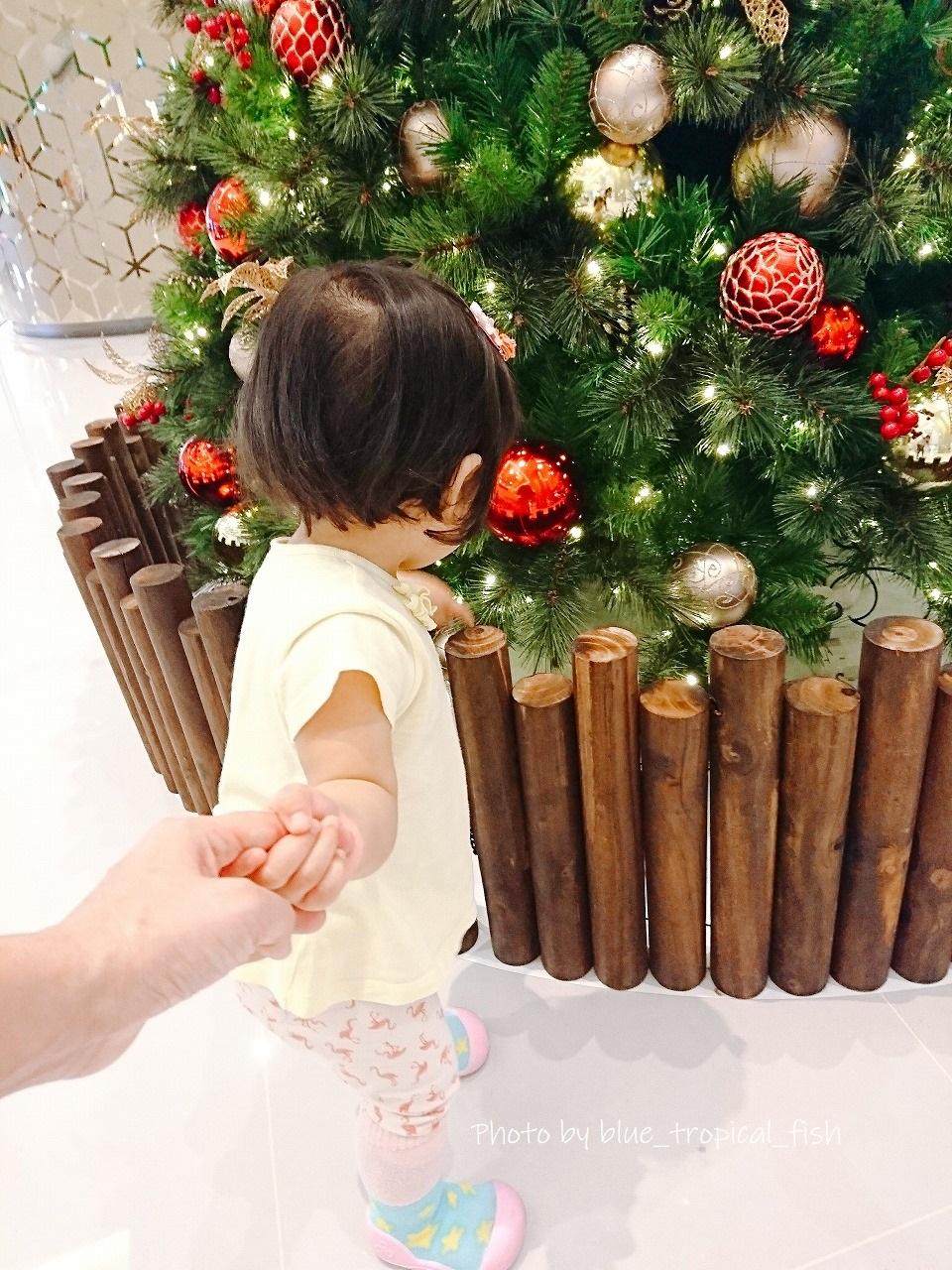 夕方は娘を連れて、子連れ用ショッピングモールD Parkをお散歩。娘はクリスマスツリーに興味津々でした。
