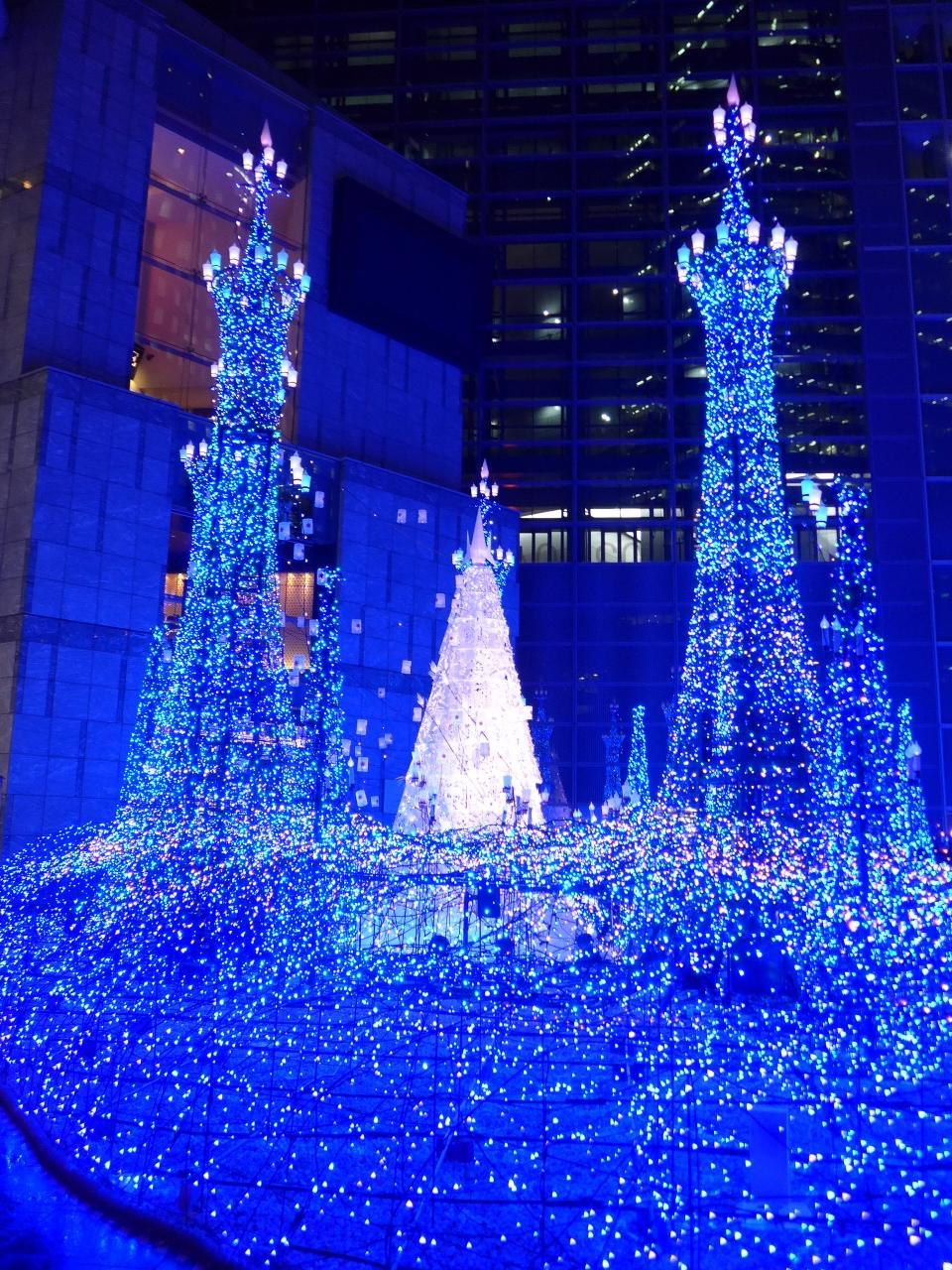 今年もブルー色を基調としたイルミネーションがビルとビルの空間で輝きとても綺麗でした。