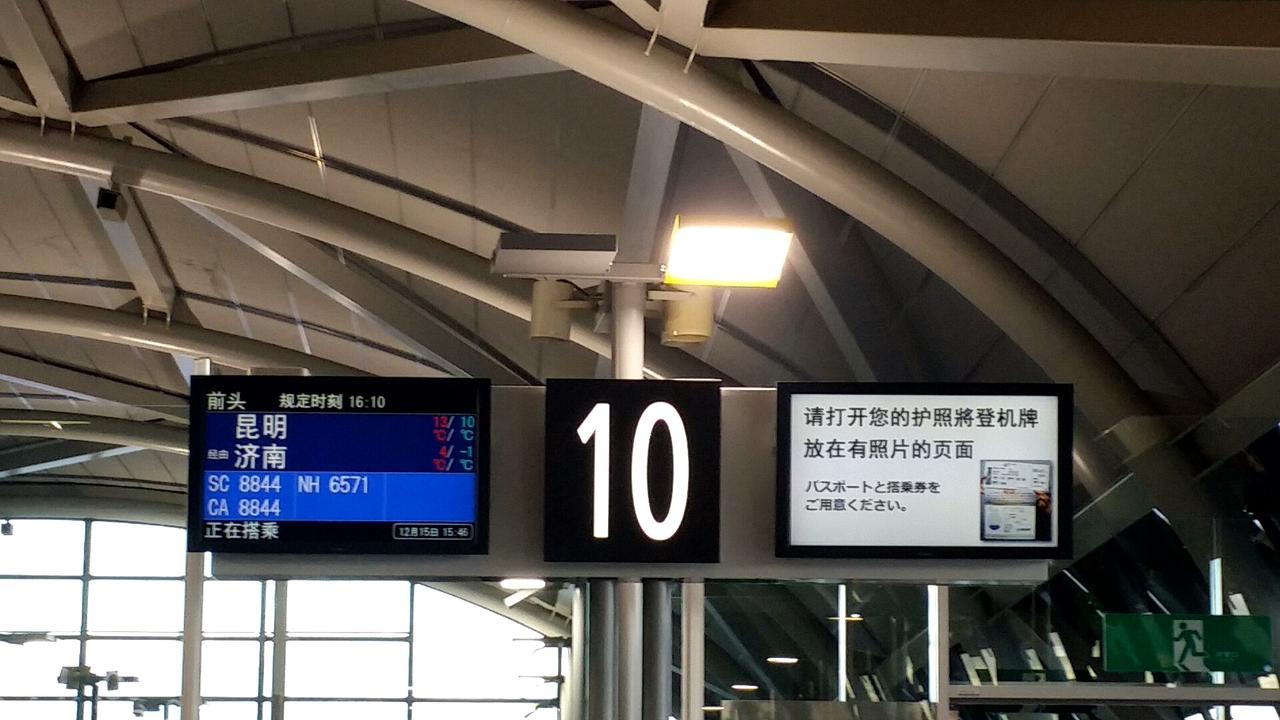 5日目 昆明(6:45発)→(済南経由)→関空(15:10着) SC8843