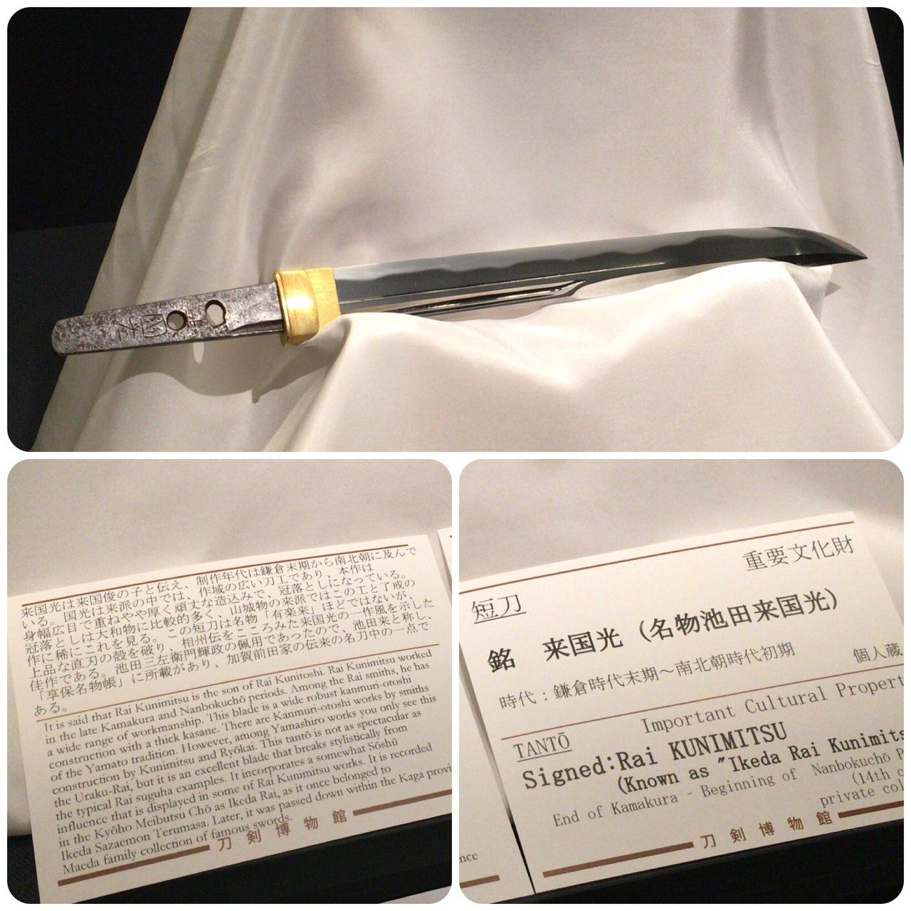 この展示会の刀の中では、この写真の池田来国光が好みだなあと感じた。次点は武蔵正宗。何がどう違う、何処がどうでああでとかサッパリだけど。