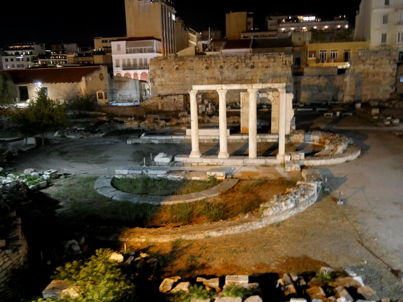 2009年以来のアテネ.夕食をアクロポリスの下のタベルナで食べたくて,ホテルに着いてから,1940にアマリアホテルを出発.Agios Eleftherios教会を外から眺めた後,Mitropoleos大聖堂へ 大きなギリシャ正教の聖堂だ!プラカ地区を横切り,2009年に食べたローマンアゴラわきのタベルナへ.タベルナアクロポリスという名前だ ロケーションは最高!夕暮れからライトアップされたローマンアゴラとアクロポリスを堪能した 場所がいいので高いかといえば,まあ普通.料理もまあまあ ウエーターのサービスは良かった アクロポリスを見ながらのワインは最高だった 今日が最後の夜 十分に堪能した
