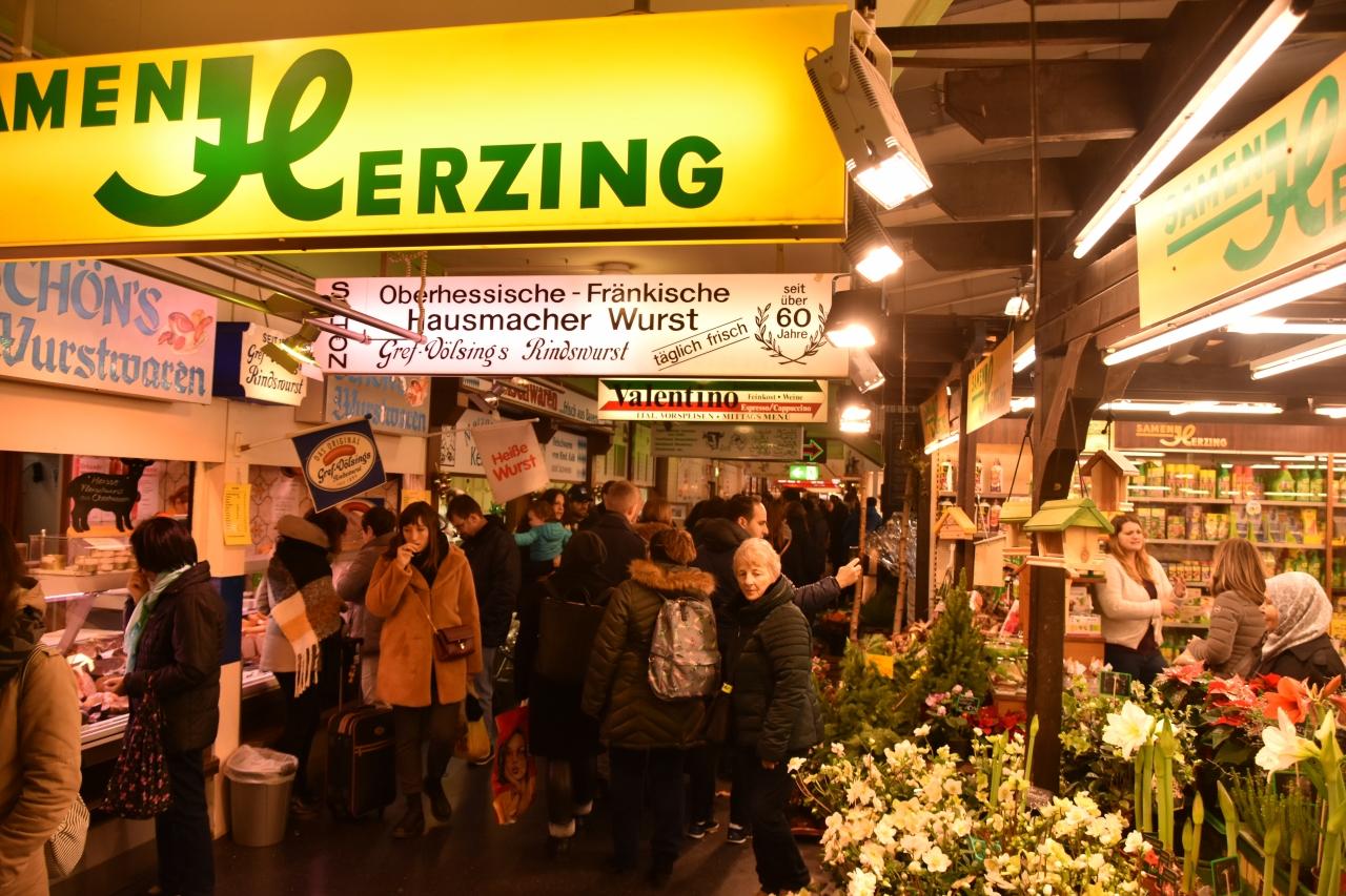 生野菜、生魚売ってたり、コーヒー売ってたりと、見てるだけでも割と飽きないクラインマルクトハレ市場 市場