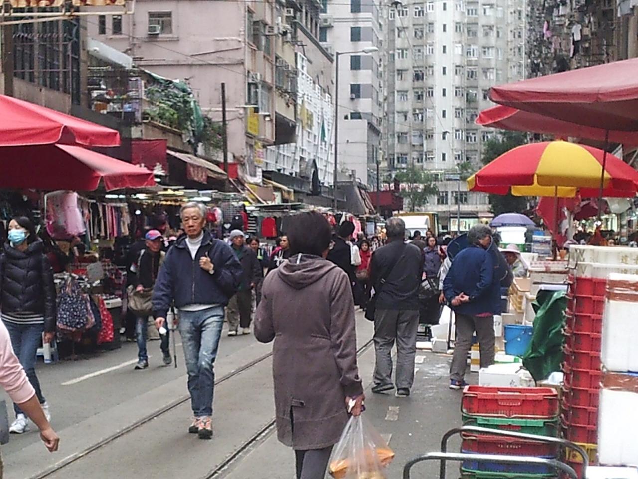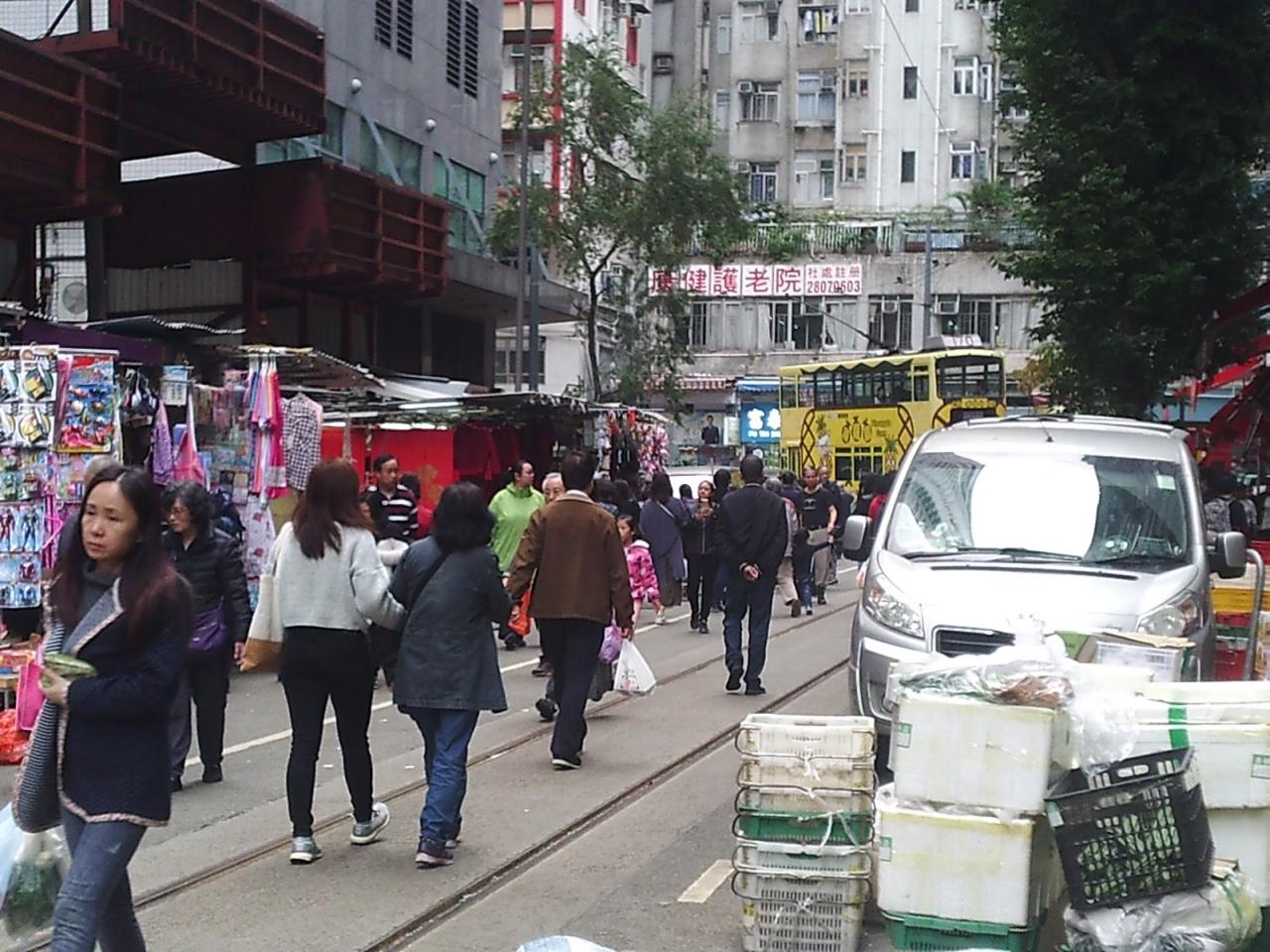 新旧のエリアの真ん中に「春秧街(Chun Yeung St.)」がある。2階建てのトラムが市場の通りに突入してくるところとして余りにも有名だが、この空間だけ異彩を放っている。