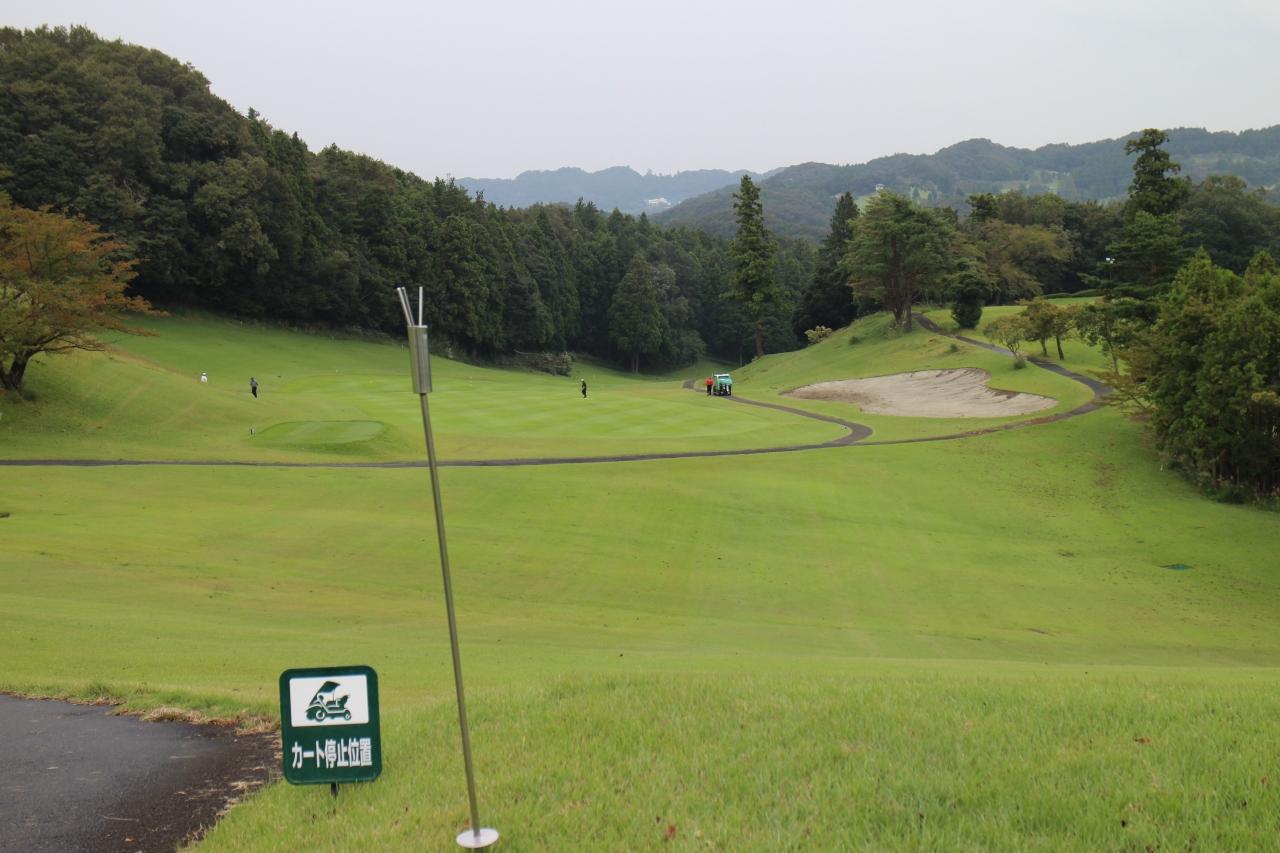 第二打は概、左下がり打ちになりやすく、打ちにくい。遠方には山々が見えフェアーウエーが広々してる by Rockyさん大厚木カントリークラブ ゴルフ場