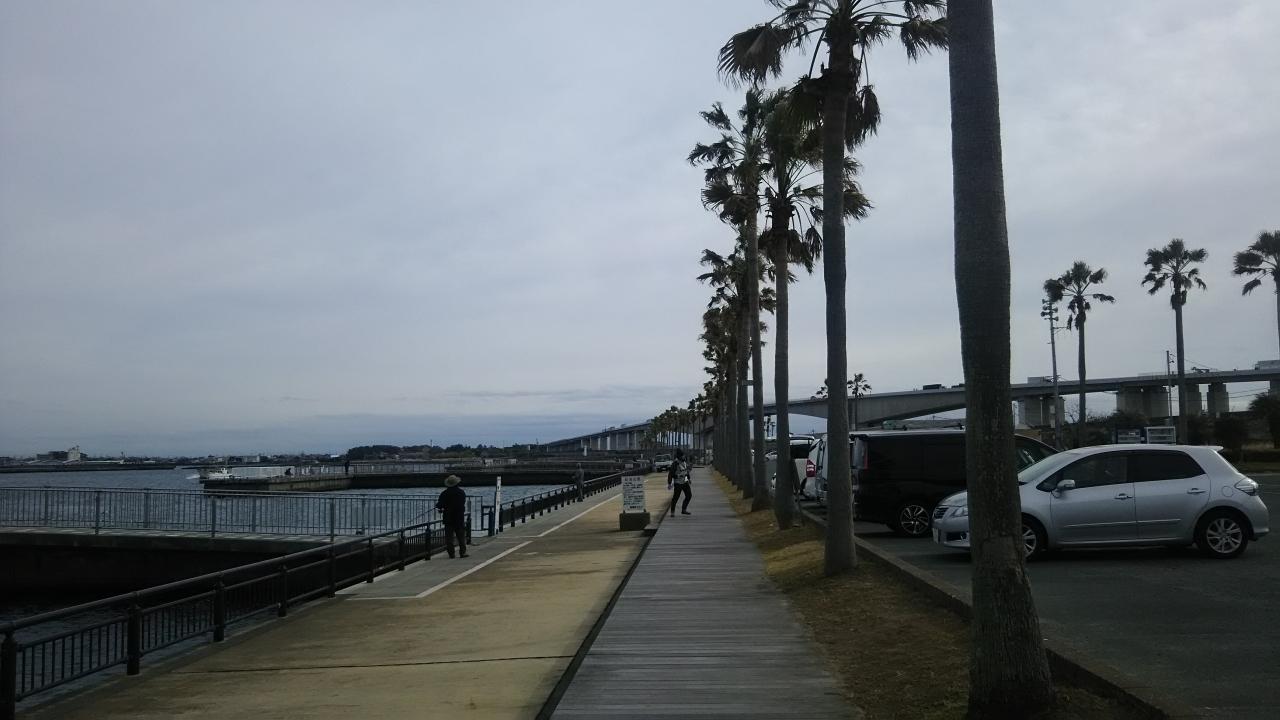さらに進むと浜名湖があります。思いつくのはうなぎですが、湖としては大きすぎて地図のイメージしかありません。水際に近づこうと進むと「海釣公園」がありました。お店が一軒あって、手ぶらで来ても釣りが出来そうな感じですし、夏に来れば南国風の景色と感じられるかも知れません。この日は風が寒かったのですが、それでも釣り人はジッと動かずに糸を垂れていました。