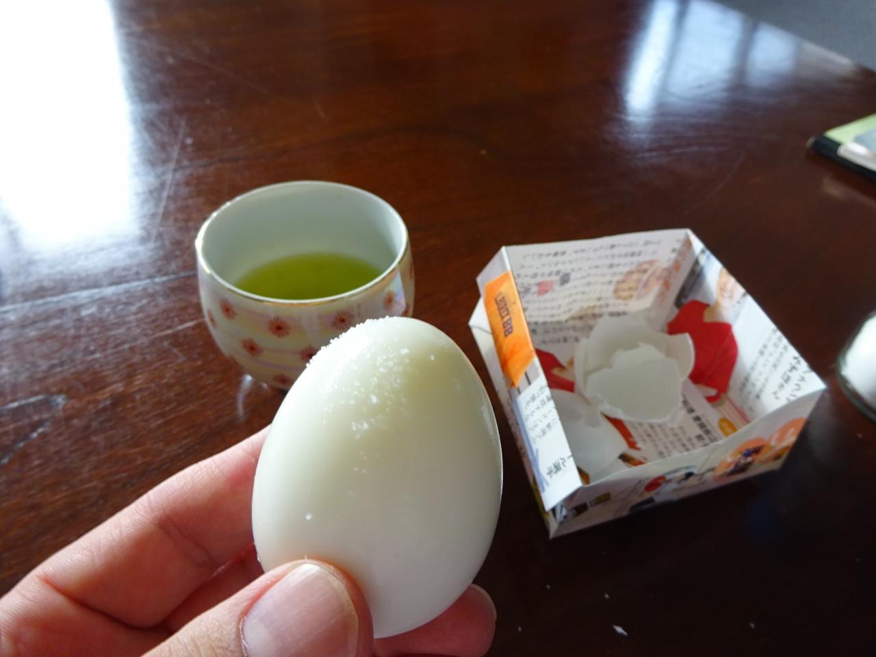 利用者には入浴後にお茶とゆで卵が出てくると何かで読んでいましたが、本当に出てきました。
