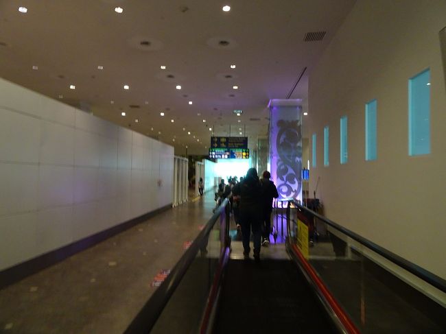 ※ 長い通路を突き当たると階下に降ります。 エスカレーター 階段 があります。 そのまま降りて行くと降りた所で混雑して列をなしています。(混雑時)