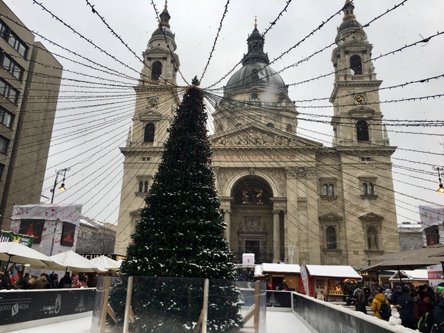 くさり橋を渡りペスト側に戻り、聖イシュトヴァーン大聖堂の前にあるクリスマスマーケットを訪れました。 デアーク広場と自由広場の間はブダペストで一番華やいだエリアです。 お洒落なレストランやカフェが沢山あります。 軽食を取り、ドナウ川を国会議事堂のほうに歩き、ホロコーストによって射殺されたユダヤ人の靴の銅像を見学して、市民公園にあるハンガリー建国1000年を記念して作られた英雄広場に行ってみました。 帰りはエンバシークウォーターをひたすら歩いてホテルに戻りました。
