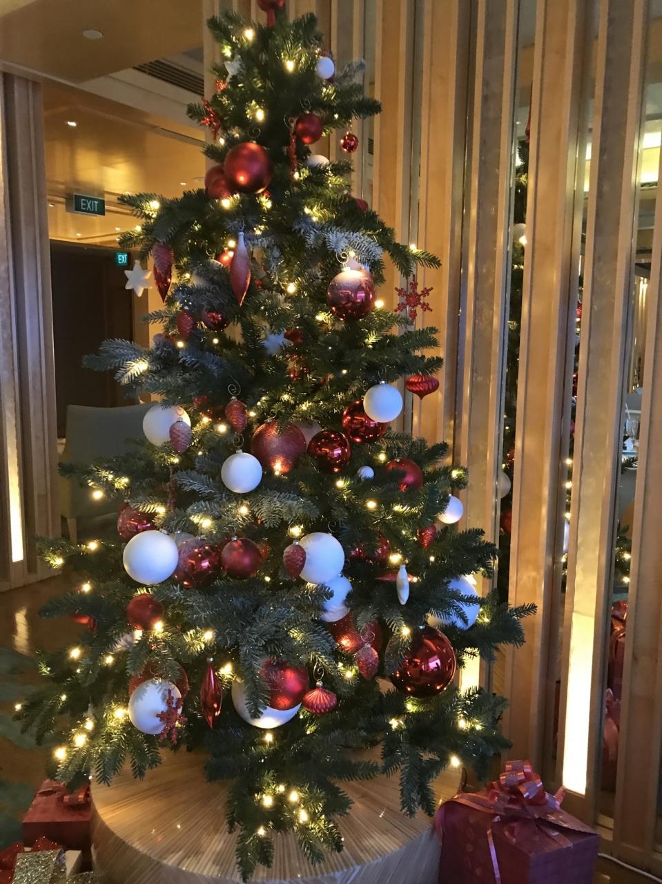 シンプルだけど豪華なクリスマスツリーが飾られたエントランスロビー。