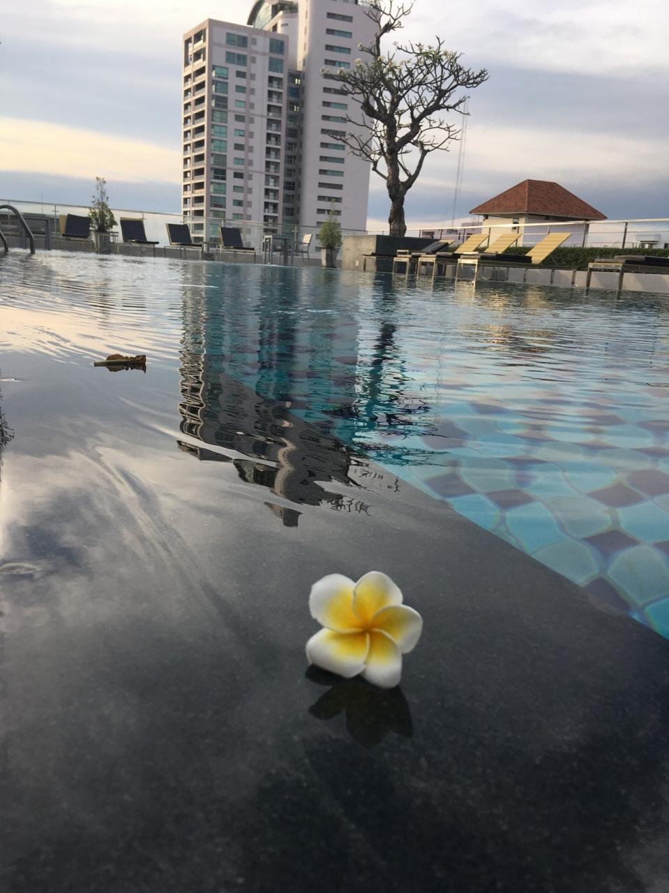 プール脇の木に咲く可愛いお花がプールに落ちてきます。リゾートって感じです。
