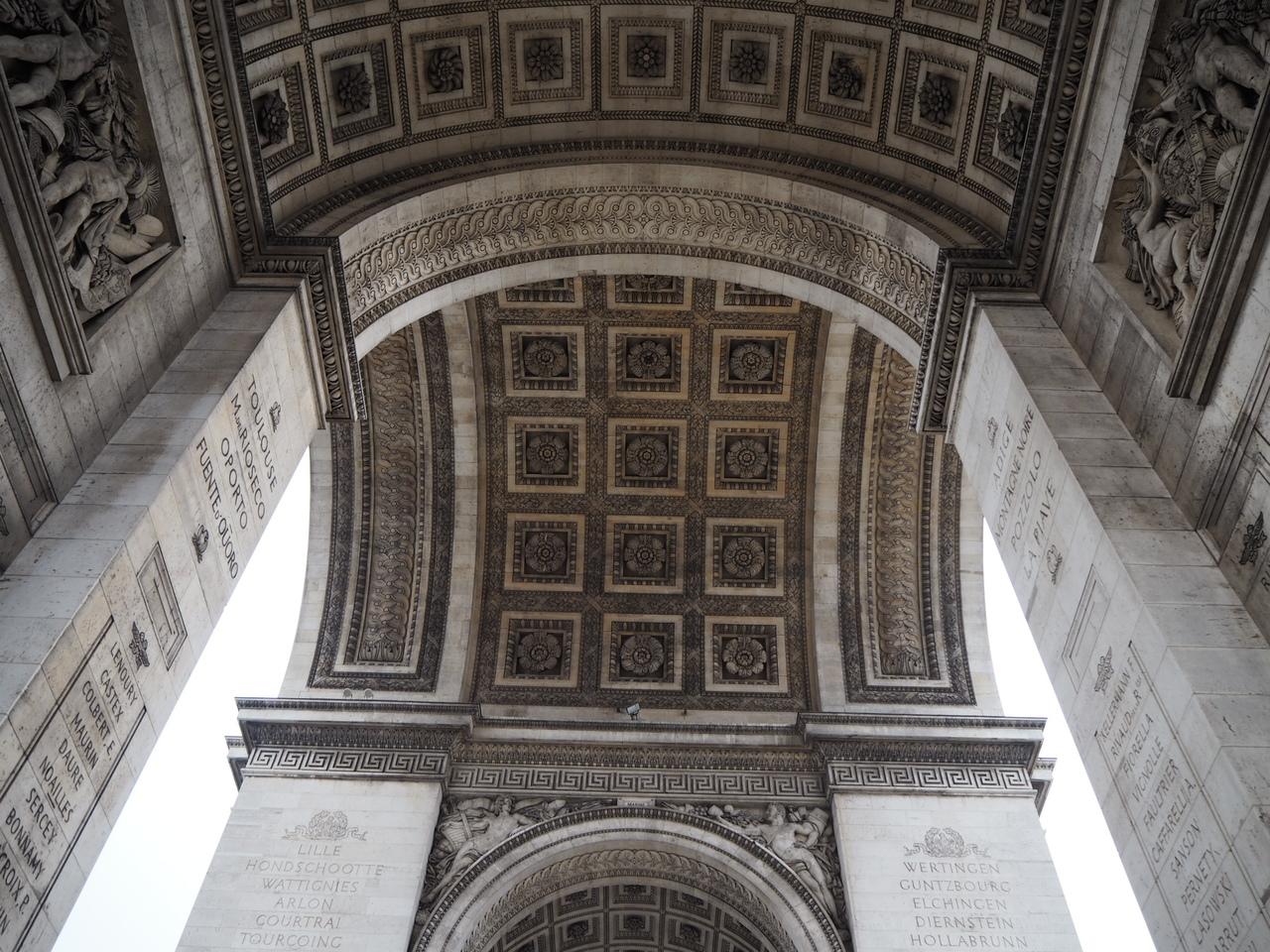 凱旋門の内側の各面には戦勝記念碑として各時代の兵士達を祈念するプレートや名前が刻まれています。