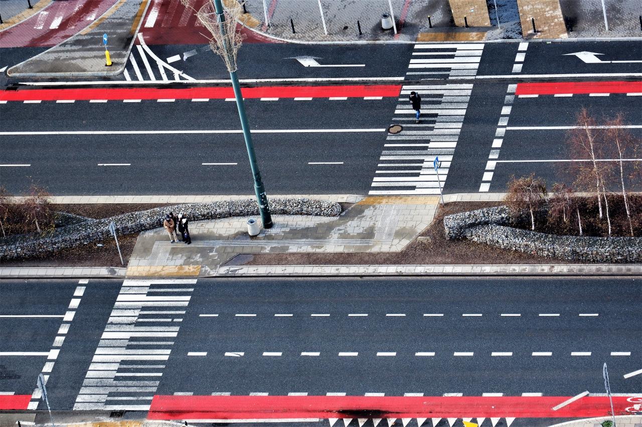 天気が良いので文化科学宮殿に登ってみました。これはその途中にある鍵盤の横断歩道です。 -
