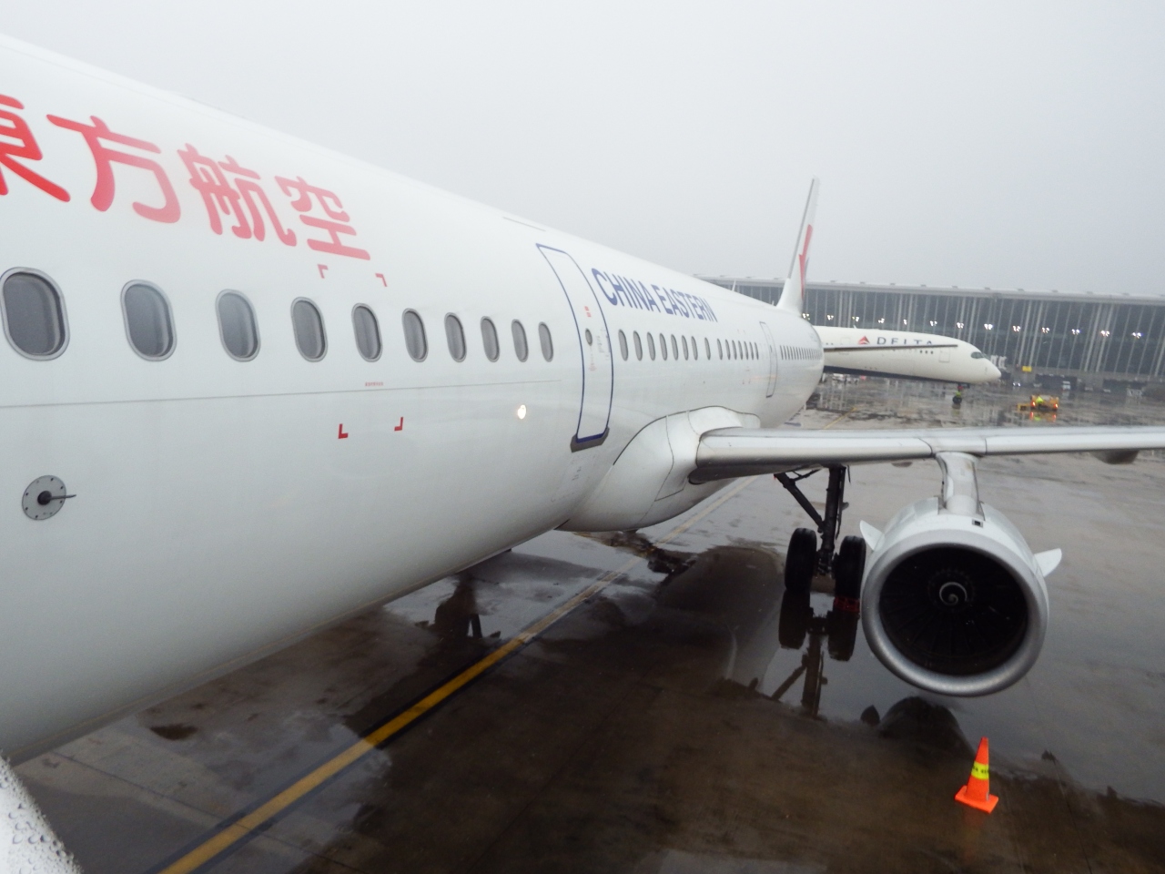 上海浦東国際空港に着陸しました。大型機もたくさん飛来します。