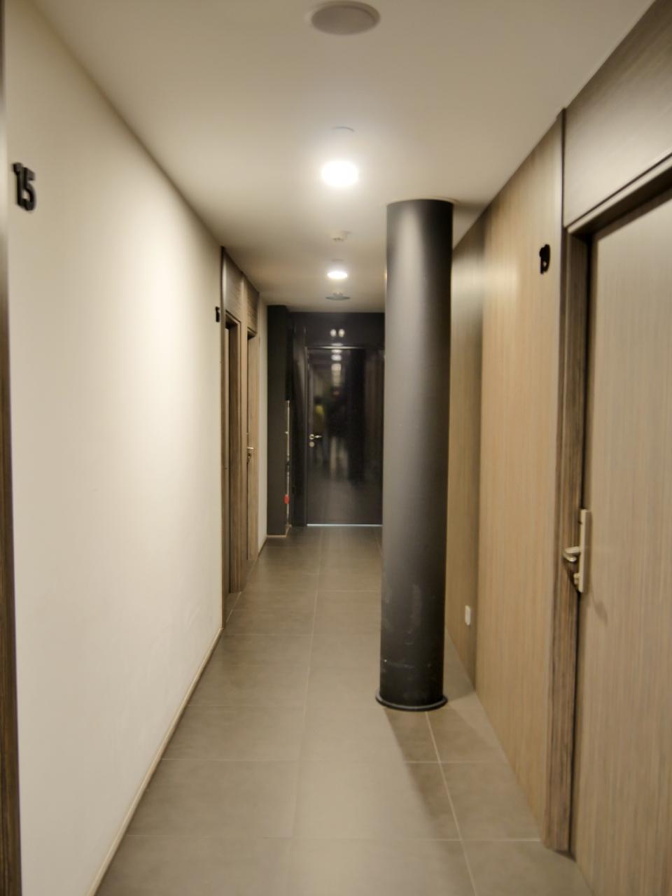 廊下 中は十数室しかない小さなほてるだ.雰囲気は大阪空港ホテルに似ているね