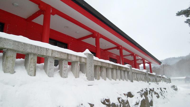ご神体は赤城山です。目の前の大沼は凍っていて、寒風が時折吹いて来て、雪を舞い上げています。