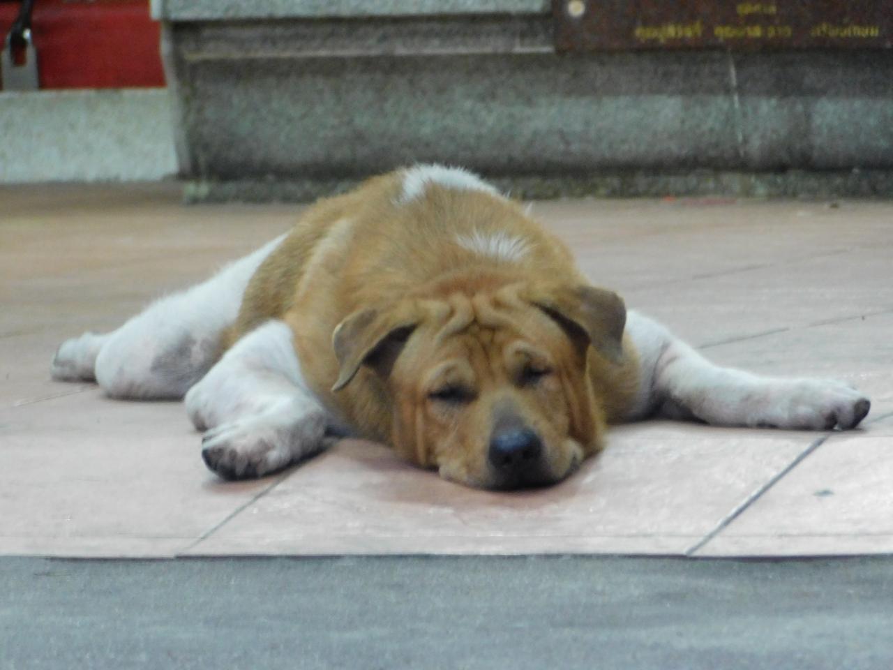 朝食屋台を探しつつ、川の方へ向かい、近くのお寺にやってきた。 -