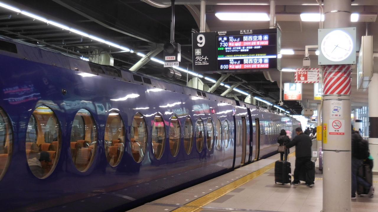 さぁ、新しい旅の始まりです。7:30難波発のラピートβに乗車。