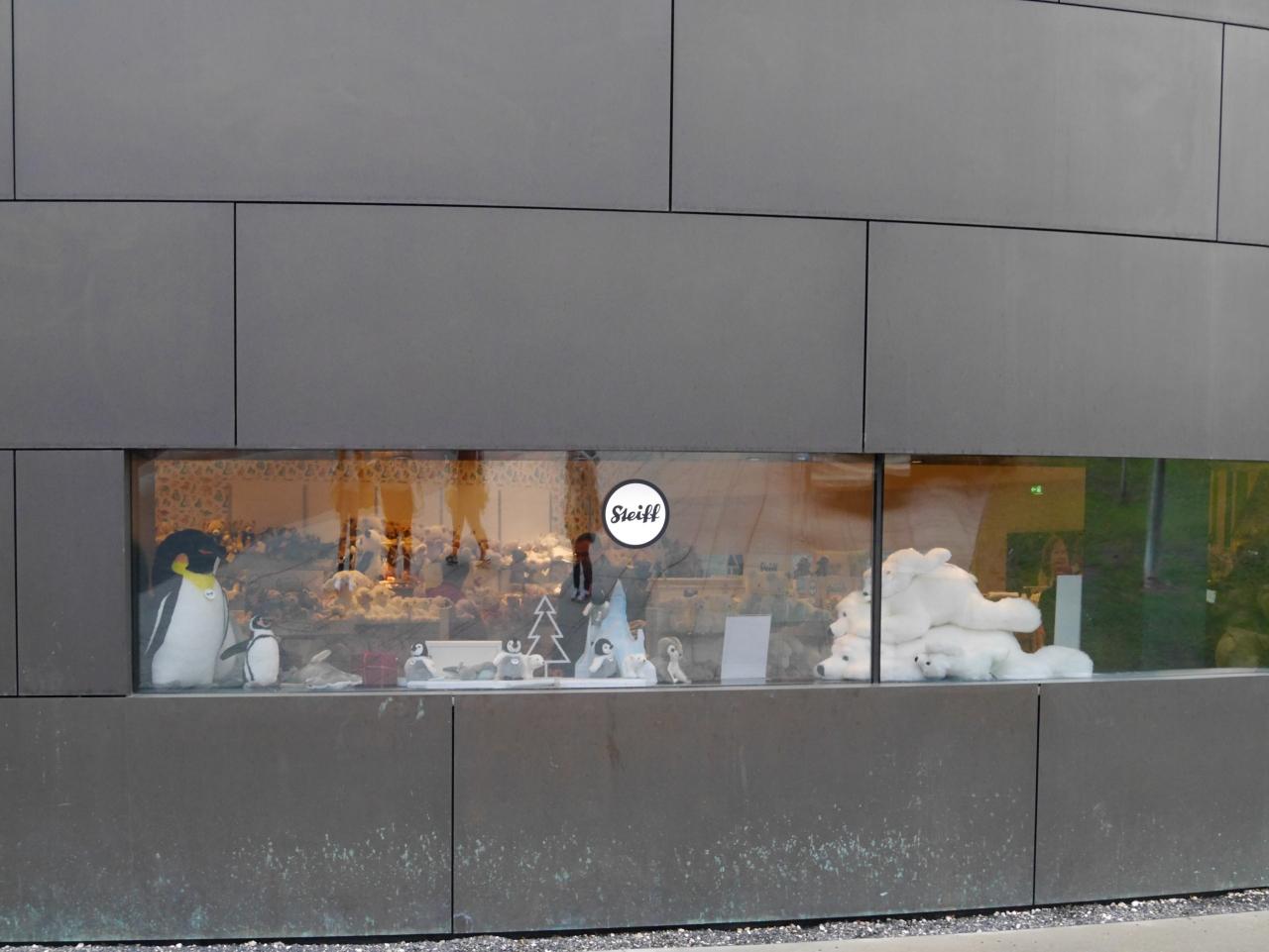 写真がとっても暗いですが熊のオブジェです。シュタイフ博物館の周りはテディベアがいっぱい歩道に熊の足跡があったりとシュタイフが地元でも愛されているのが伝わってきます。