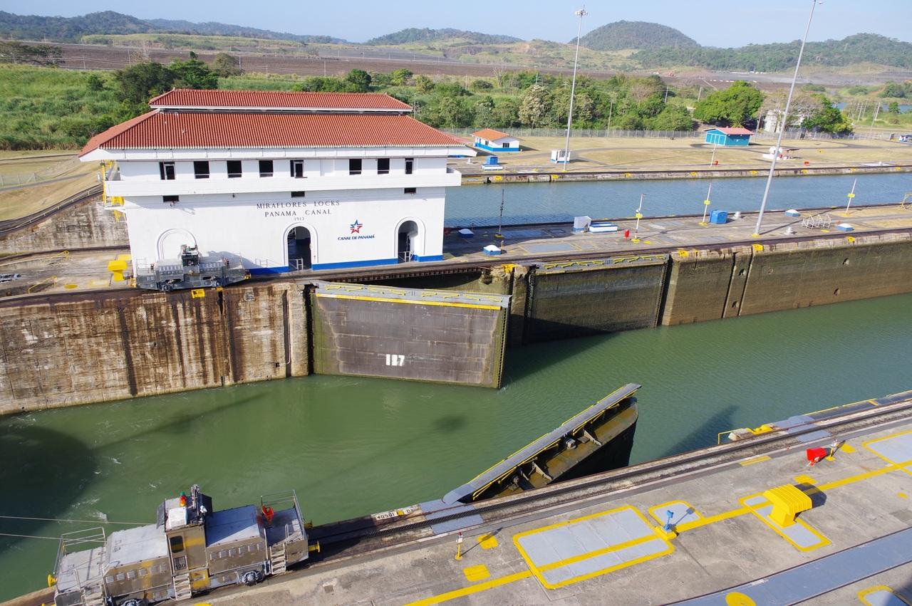 パナマ運河は太平洋と大西洋とを結ぶ運河であることには違いないのですが、スエズ運河のように単純に二つの海を結ぶことはできない標高があるためこんな施設が設けられているのですが、ボトルネックになっているのも事実。
