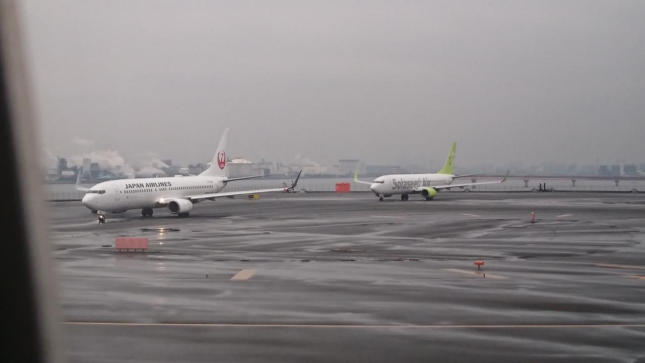 後ろには、JALとソラシドエアが、飛び立つ順番を待っていました。