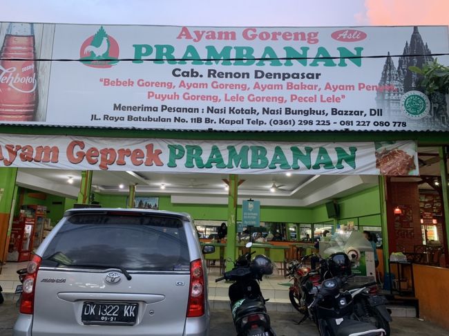 バトゥブランからデンパサールへ向かう途中にある、ワルン(ローカル食堂)「アヤムゴレン プランバナン(Ayam Goreng Prambanan)」。