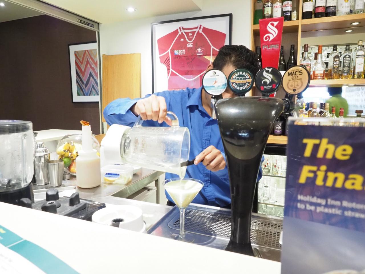 キウイのカクテルジュースを作って頂きます。これを持って夕食会場に行く羽目に。それならオーダーしなければ良かったかもしれない。夕食の時間が後30分とは知らずに、とほほ。でも美味しかったです。オススメ。早めにオーダーしましょう。