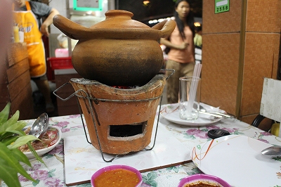 チムチョムに白菜投入。白菜は日本でも冬の野菜扱いだから、ここバンコクではコストの高い温度調節が可能な農場でしか作れないはず。このローカルレストランがどうやって安価に手に入れるのだろう。