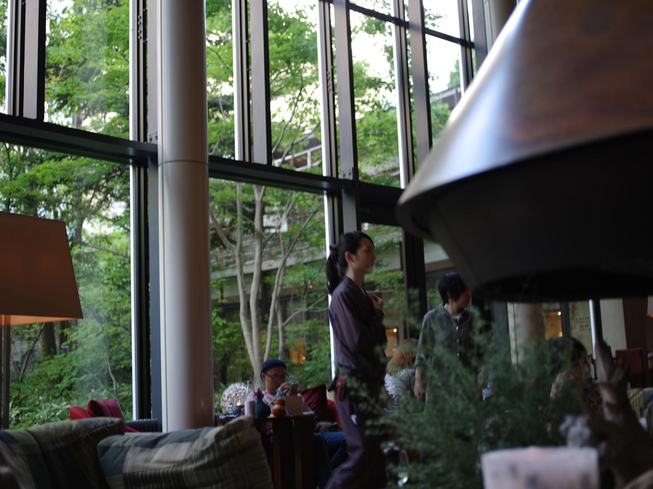 ラウンジの大きな窓から見える景色は若干大学図書館みたいな感じ。