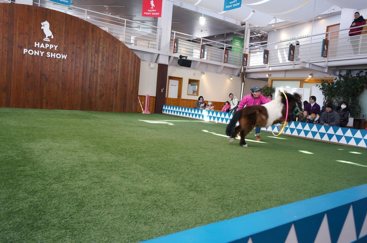 中に入ると、真ん中にポニーがショーを行う場所があり、そのサイドには椅子があります。