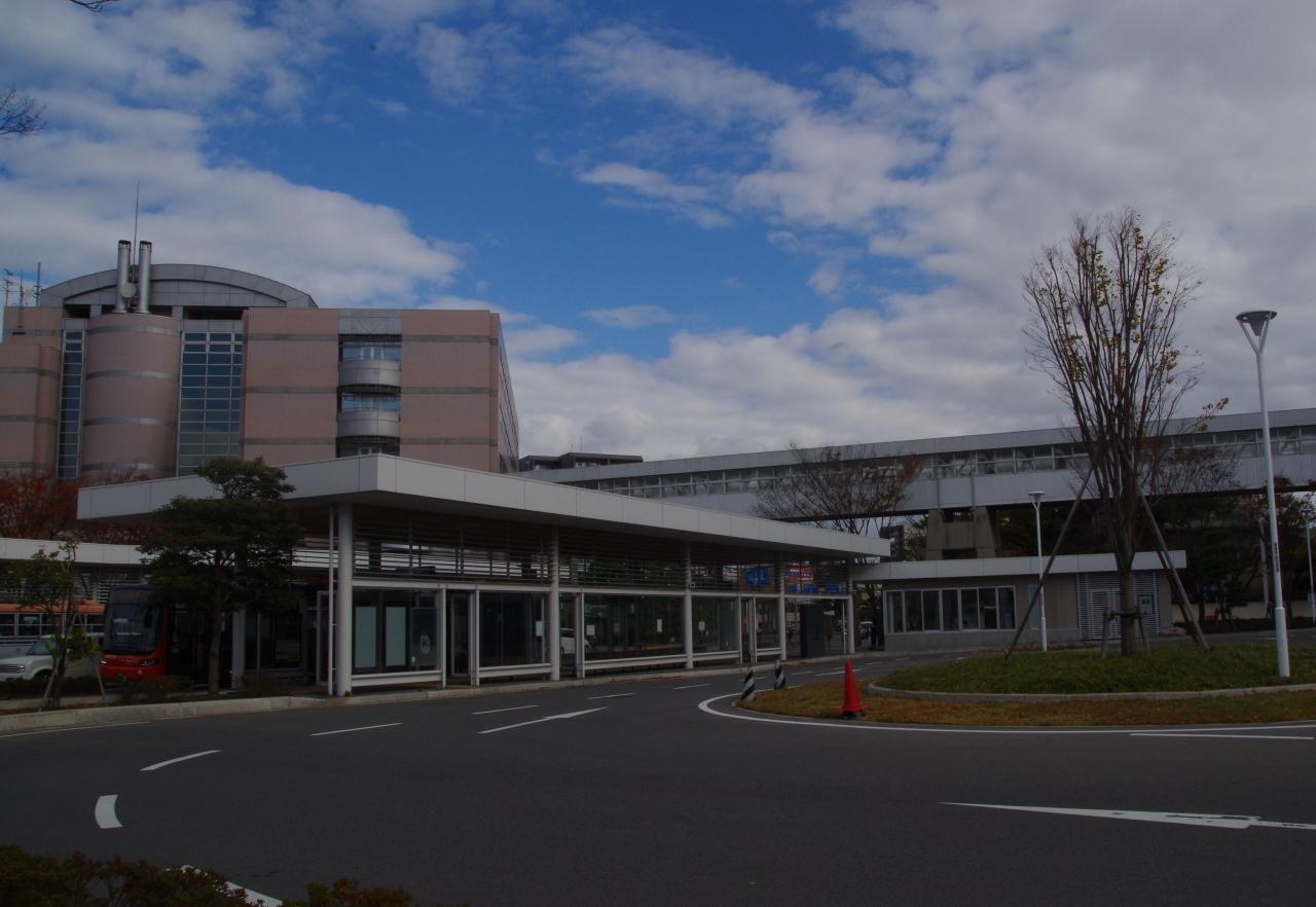 外からみるとこんな感じです。市役所で乗り継ぐバスの乗り場はロータリーになっています。