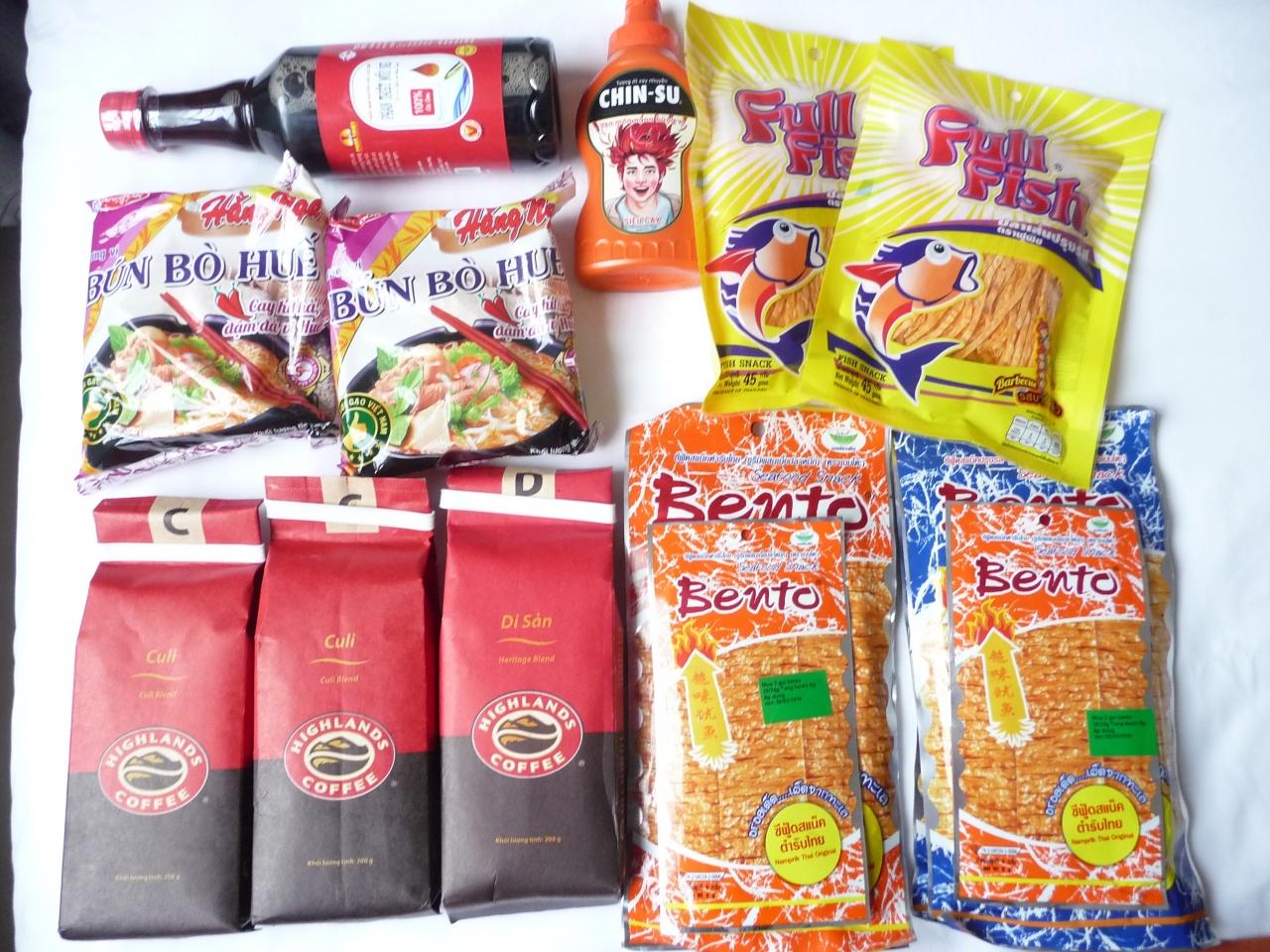 スーパーマーケットで購入した、ホテルで就寝前に飲むビールのおつまみと、ベトナムコーヒーBún Bò Hueブンボーフエと言うレストランで食事できなかったけれど、