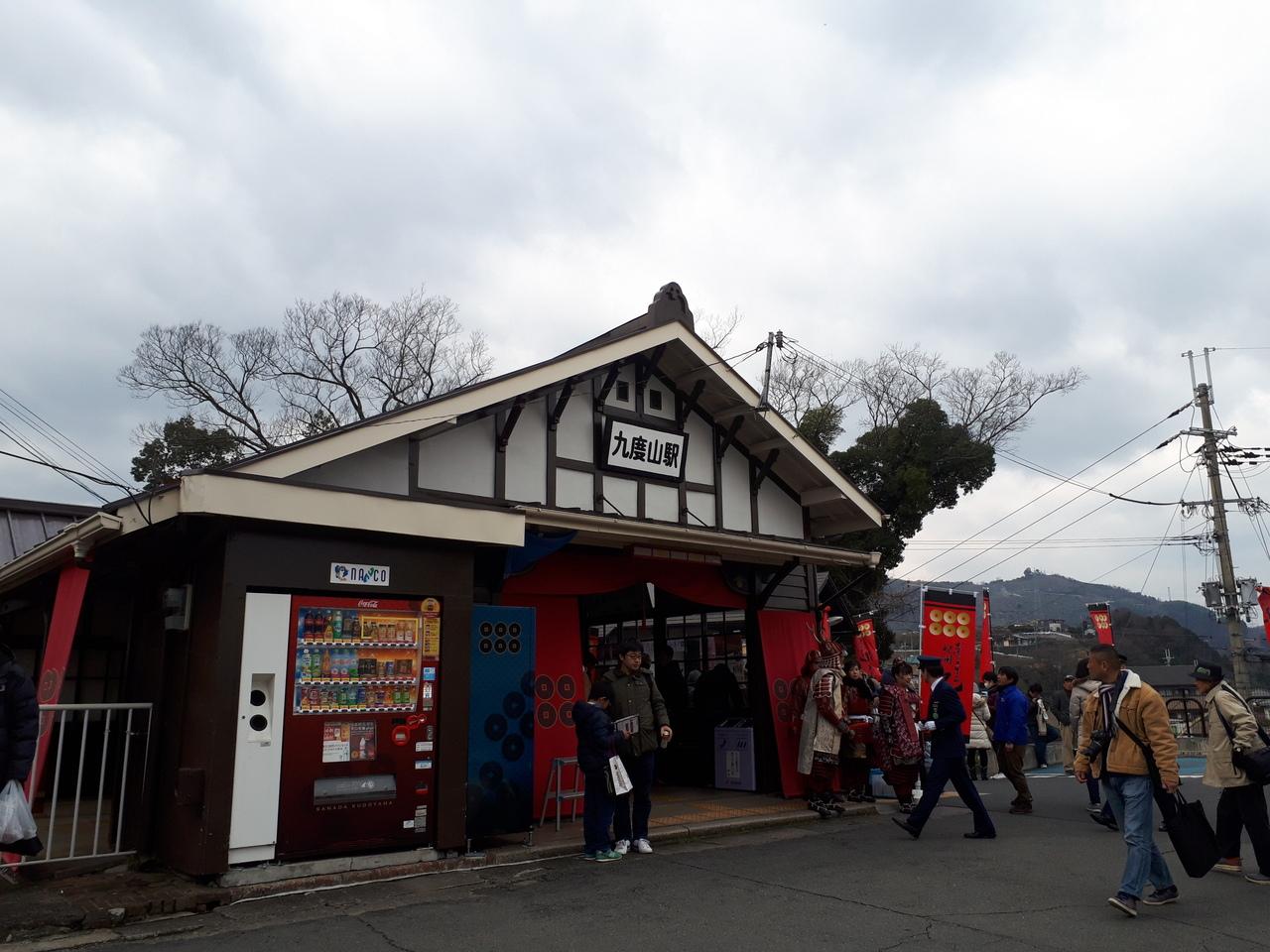 九度山駅舎は、真田丸一色のデザインになっていました。駅の自販機までもが、真田丸のデザイン(六文銭)になっていました。真田丸の大河ドラマは、終了しましたが、暫くは、真田丸のデザインを続けるそうです。