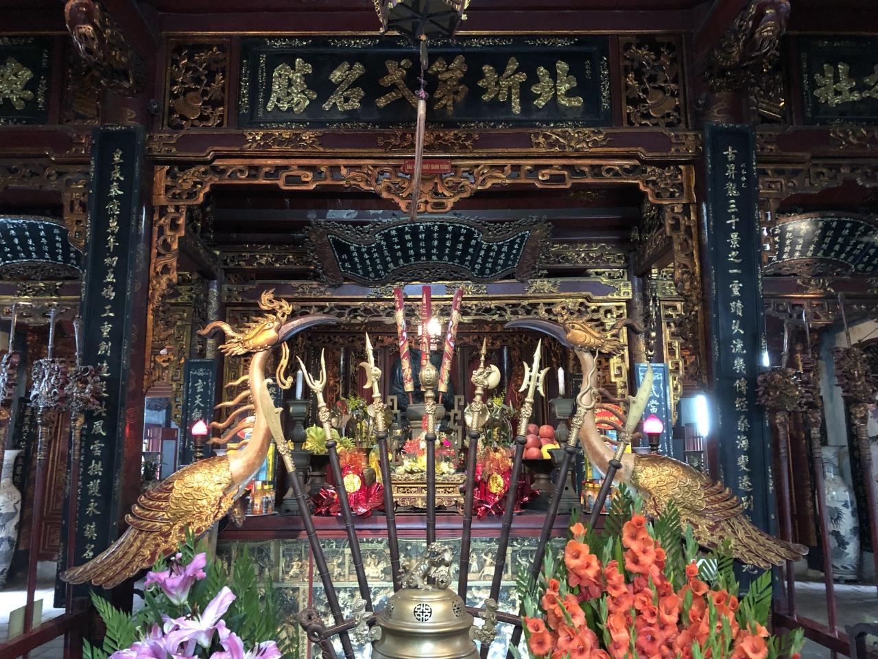 北方(中国)からタンロン城を守る鎮守として11世紀頃に建立されました。門の上方、真武観とあります。