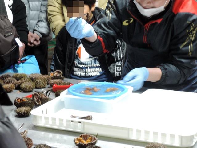 ここで昼食ですが、その前にうにの加工の説明をしていただきます。 -