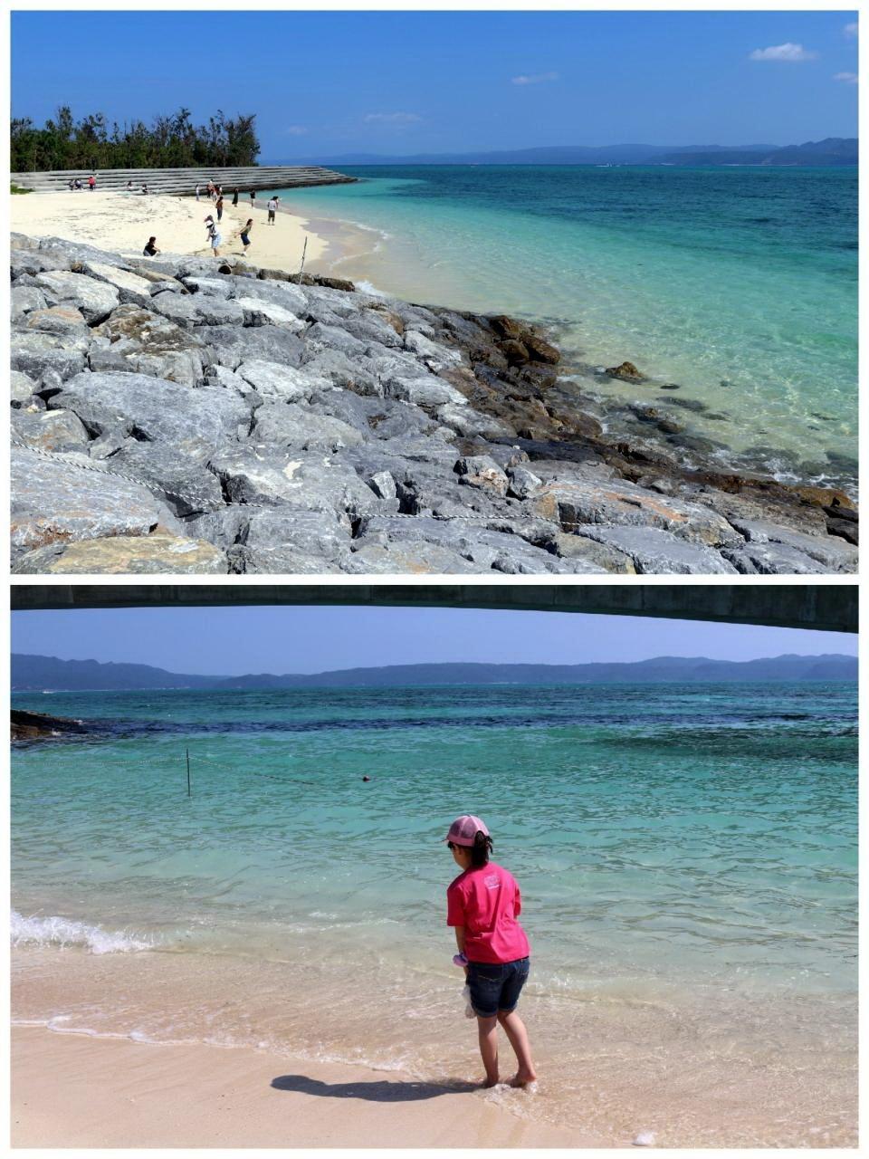 海人門(ウミンチュゲート)からエスカレーターを降りると、綺麗な海が広がっています。
