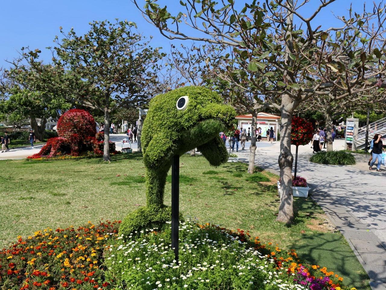 イルカのオキちゃんなど、いろんな海の生き物の刈込(トピアリー)が目を楽しませてくれます。